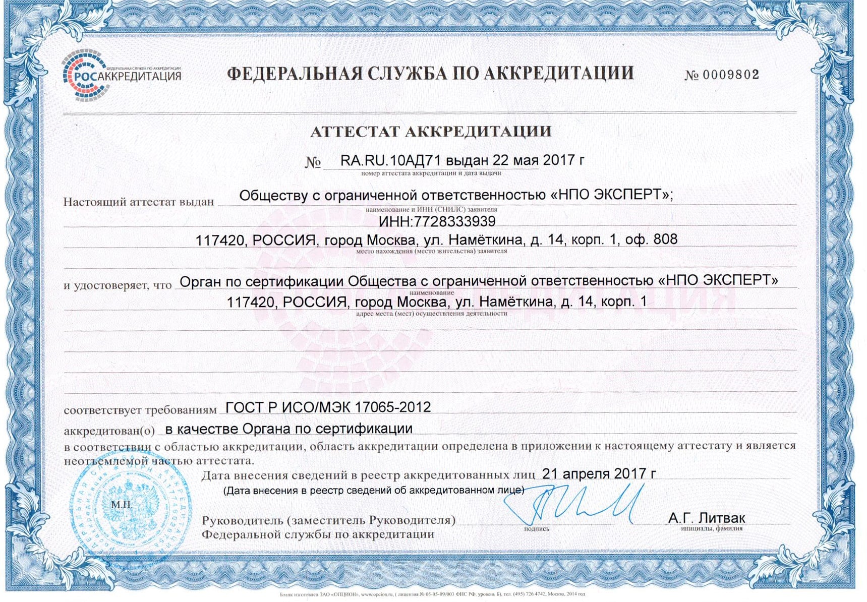 Росаккредитация формирует единую национальную систему и контролирует работу органов по сертификации и испытательных лабораторий.
