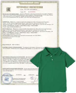 Сертификат на швейные изделия от 15 000